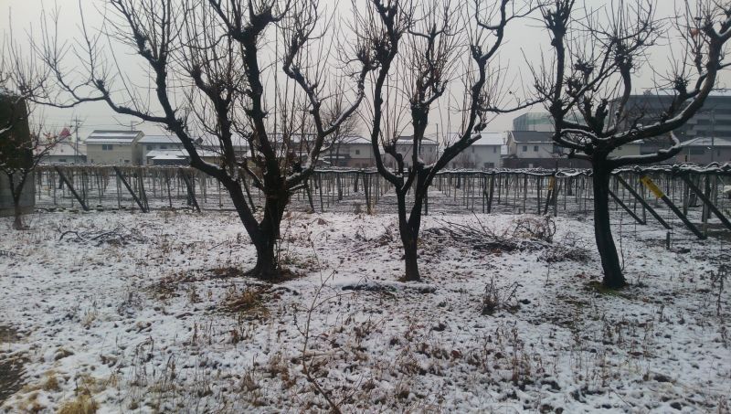 山梨県では昨日の雨が日没から雪へと変わり今朝の甲府盆地では一面の銀世界へと変わっていました。富士五湖方面ではかなりの積雪だと思います。
